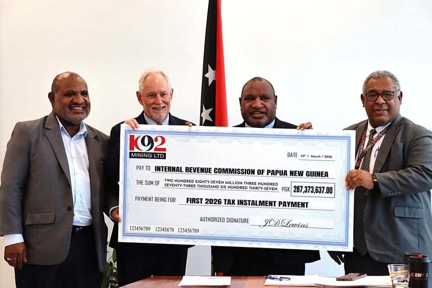 Prime Minister Hon. James Marape on behalf of the government, has received K287,373,637.00 from K92 Mining Limited, marking the first tax installment payment for 2026.